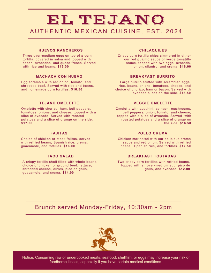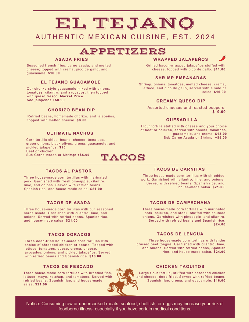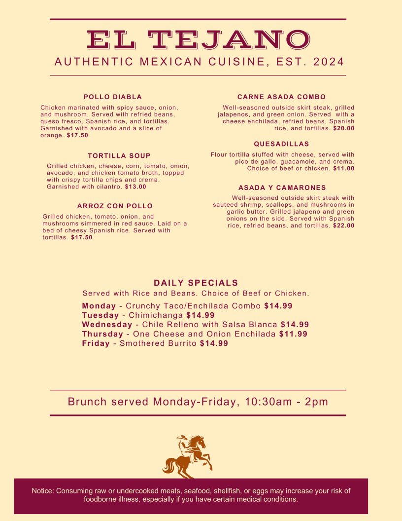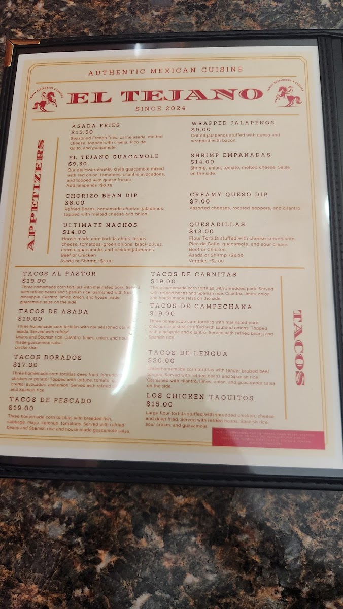 If you’re in the mood for authentic Mexican flavors, El Tejano Mexican Restaurant Menu is the place to be. Nestled in Toledo, WA, this cozy spot on 115 Cowlitz St offers a vibrant mix of classic and unique dishes that will take your taste buds on a delicious journey. From sizzling fajitas to mouthwatering tacos, every dish is crafted with fresh ingredients and bold spices, capturing the heart of Mexican cuisine.