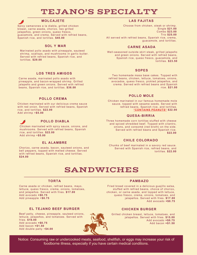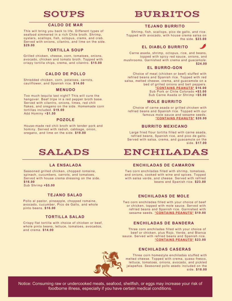 Whether you're a fan of traditional favorites like enchiladas and tamales, or you're looking to try something new, there's something for everyone. The menu also features hearty burritos, zesty salsas, and flavorful sides, all prepared with a passion for great food. It's the perfect place to enjoy a laid-back meal with friends or family, so come hungry and ready to dive into a fiesta of flavors at El Tejano!